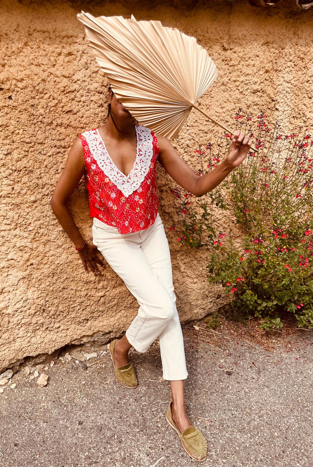 Coup de cœur pour cette blouse courte et ample, dont le décolleté peut se porter devant ou dans le dos selon vos envies.