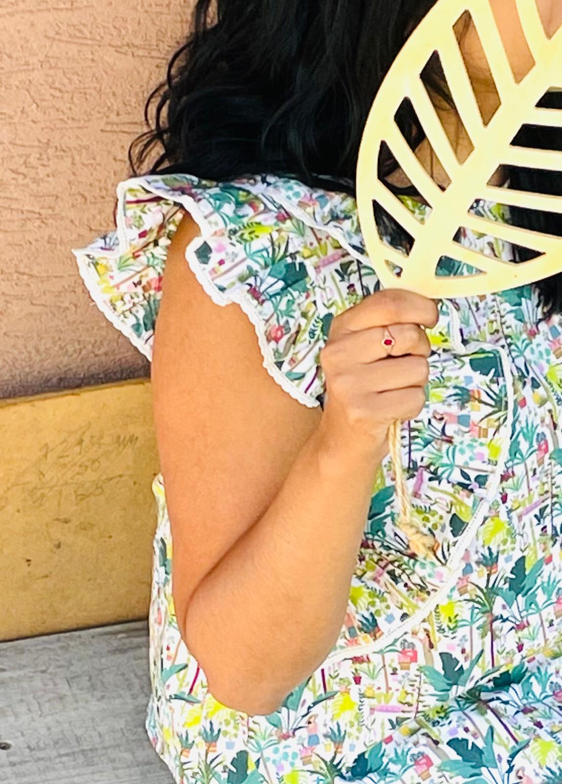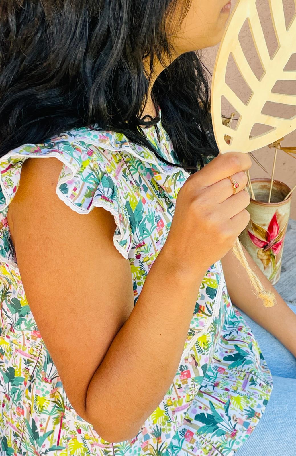 100% coton, cette pièce est une véritable ode à la nature, aux jardins et à celles qui en prennent soin.